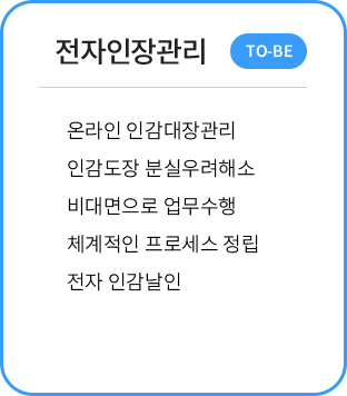 기업에서 오프라인으로 관리하는 인감(법인인감, 사용인감) 사용신청을 전자인장을 통해 관리함으로써