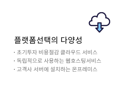 또한 구축형 솔루션 제공과 호스팅 형태의 서비스 모두 제공합니다.